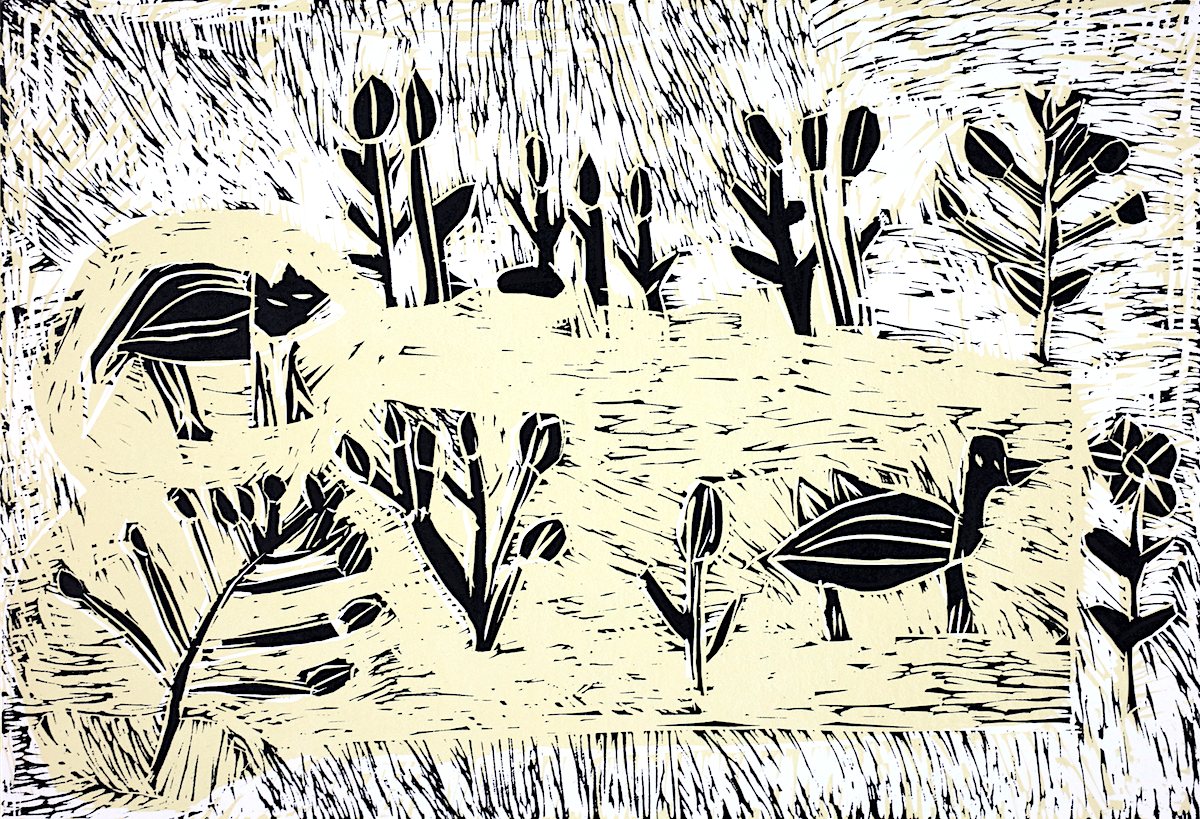 Two colour lino print on 300GSM Somerset paper