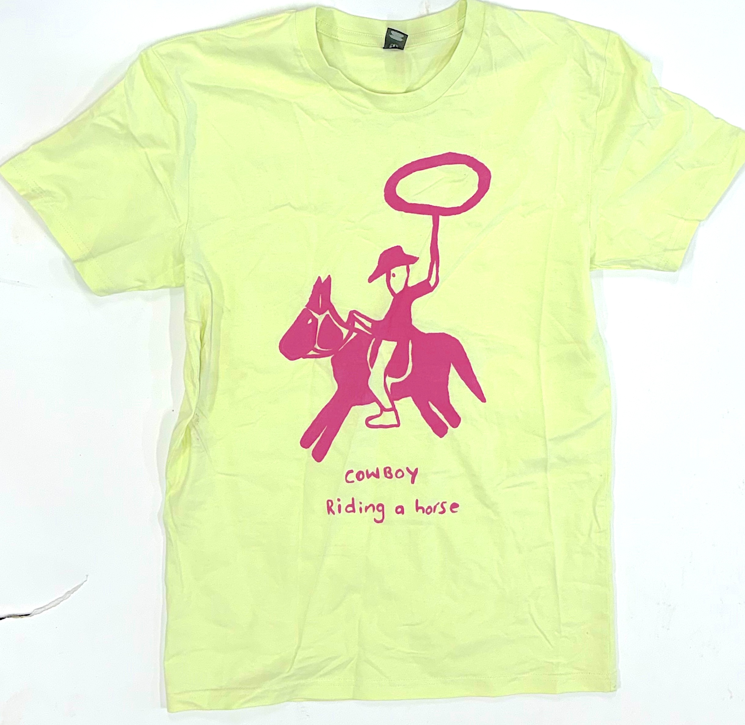 Screen-printed Pink ‘Cowboy Riding a Horse’ design by Jill Daniels.